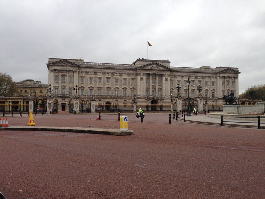 Volgende stop is Buckingham Palace. Hier zetelt al sinds 1837 het Britse koningshuis. Buckingham Palace is niet alleen de officiële residentie van de monarch, maar ook het centrum van vele staatsceremonies en koninklijke evenementen. Het paleis telt 775 kamers, waaronder 19 staatskamers die soms openstaan voor publiek tijdens de zomer. De bekende wisseling van de wacht bij Buckingham Palace maken we niet mee, want deze wordt i.v.m. Remembrance Sunday niet georganiseerd.