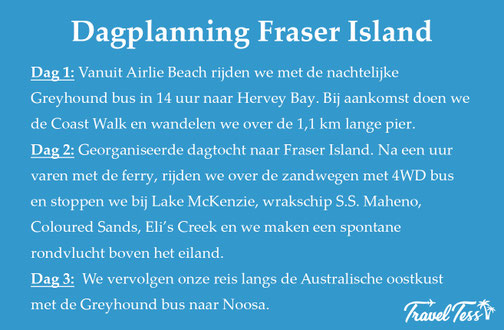 TIP 2: boek een tour naar Fraser Island op tijd, want wij deden dit pas een dag van tevoren en toen hadden we weinig keus meer. Het is een populaire bestemming!