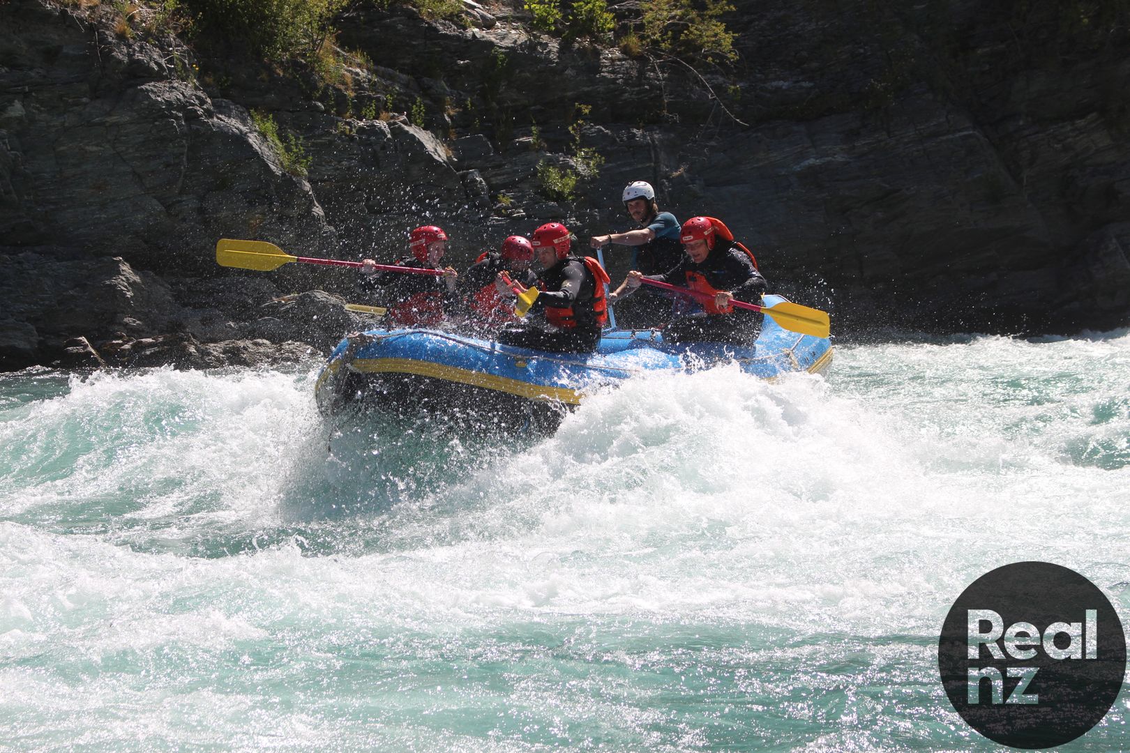 Je kan er ook voor kiezen om niet met de bus naar de start van de rafting plek te gaan, maar met de Jet Shotover. Dan wordt je vanaf Queenstown in een bumby ride vervoert over het water naar de startplek, dit is 70 NZ dollar per persoon duurder. In totaal waren we 4 uur kwijt aan de activiteit. We hadden hele gezellige en sociale gidsen die vertelden dat de meeste raftinstructeurs in de Nieuw-Zeelandse winter naar Noorwegen vertrekken om daar in de zomer te gaan werken als raftinstructeur.